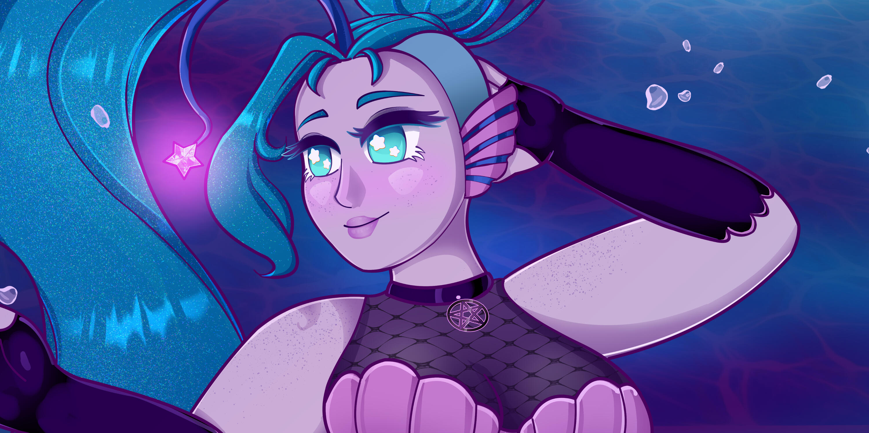 | caelia is the youngest child of the dreaded mother of monsters, echidna. though clearly built for the sea, they were forced to remain on the isle of monsters where their mother resided, until one day they were lured into the ocean by a beautiful siren, where they went on to become the sea witch for a merfolk kingdom. |